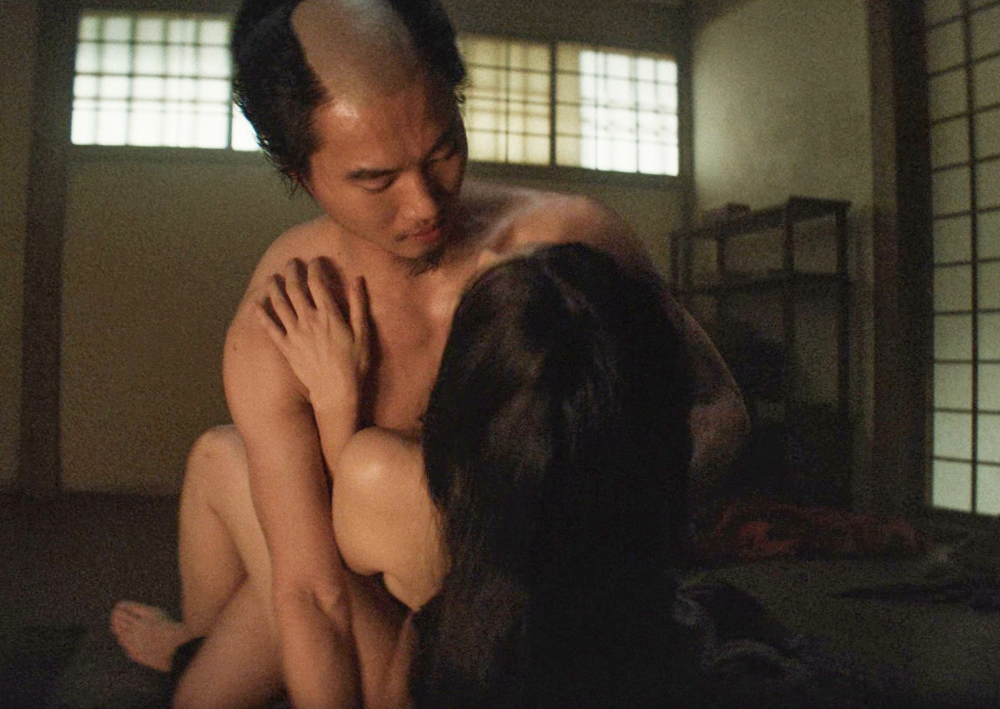 ラブシーンを熱演しています。